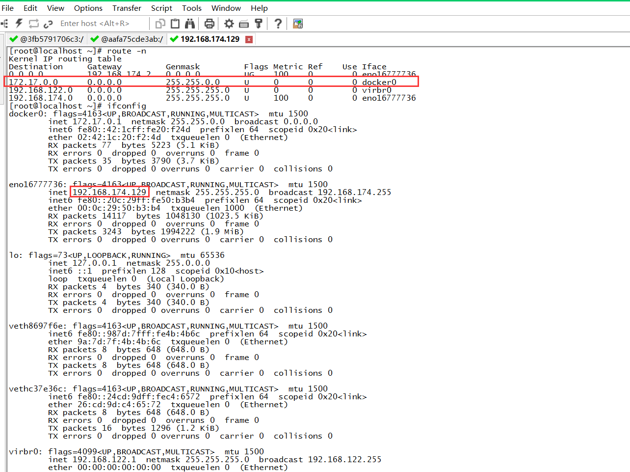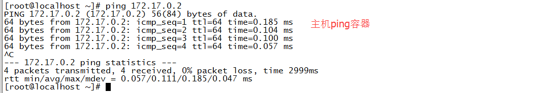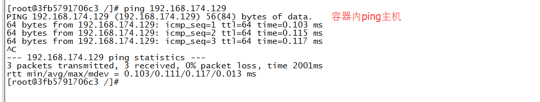 通过查看,知道主机ip 192.168.174.129,容器tomcat01的ip是172.17.0.2,那么接下来测试下主机ping容器ip,容器ping主机ip是否通。