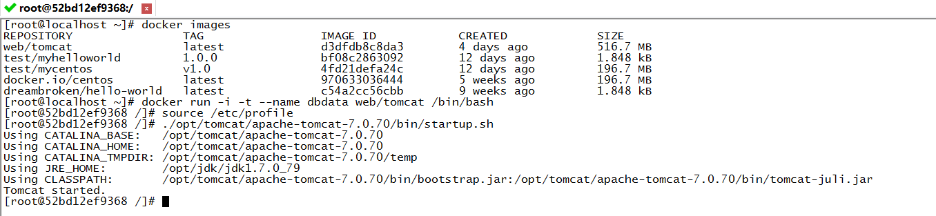 创建dbdata容器,并启动里面的tomcat(默认端口8080)。