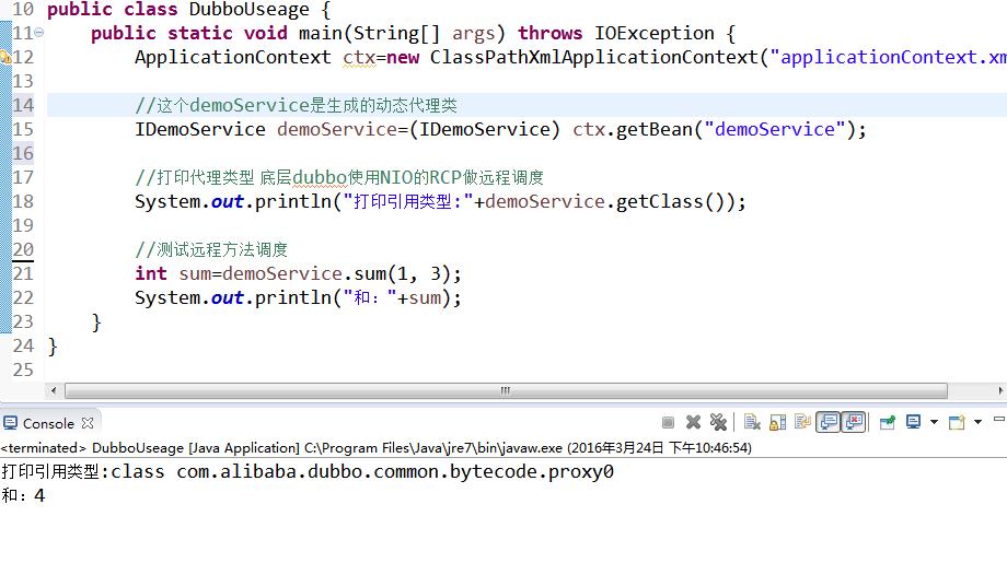 3. id="demoService" 这个是给本地的程序使用的,本工程的程序可以相当于用一个普通的bean,去使用这个接口的引用