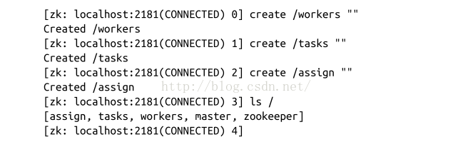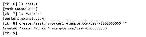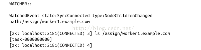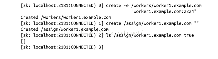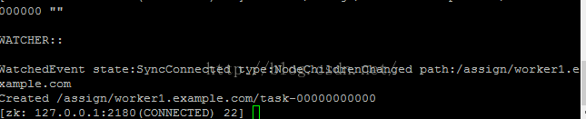 接下来,worker需要创建一个父节点/assign/worker1.example.com,并且对他进行监听的操作