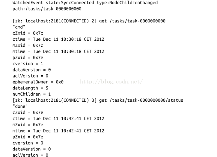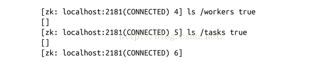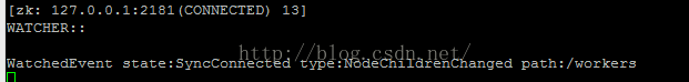 首先,worker需要通知master它是可以执行task的,因此我们创建一个临时的节点来代表worker的子节点。注意到workers下面创建了子节点,我们可以从监听中看到相应的输出信息。