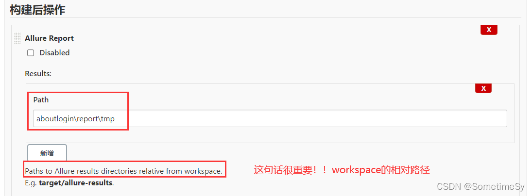 打开allure显示这个查看控制台日志,发现没有读取到结果文件首先我们要知道,allure生成报告有两步,第一步是生成json、txt这种结果文件。第二步是根据生成的结果文件,去生成报告,如下图所以是我们jenkins上读取结果文件设置地址不对,所以报告打开就是空的(中间省略一万字的踩坑史,直接说解决方案)我们在配置中设置读取结果文件的地址在这里,下面提示说要输入workspance的相对路径那当