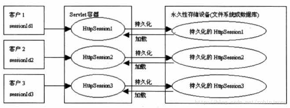 当一个Session开始时,Servlet容器会为Session创建一个HttpSession对象。Servlet容器会在某些情况下,把这些HttpSession对象从内存中转移到永久性存储设备中(如文件系统 或 数据库)中,在需要访问HttpSession信息时在把它们加载到内存中。