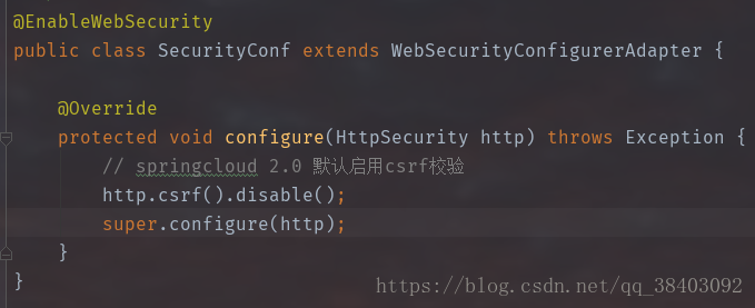 - 覆盖父类的 configure(HttpSecurity http) 方法,禁用掉 csrf。