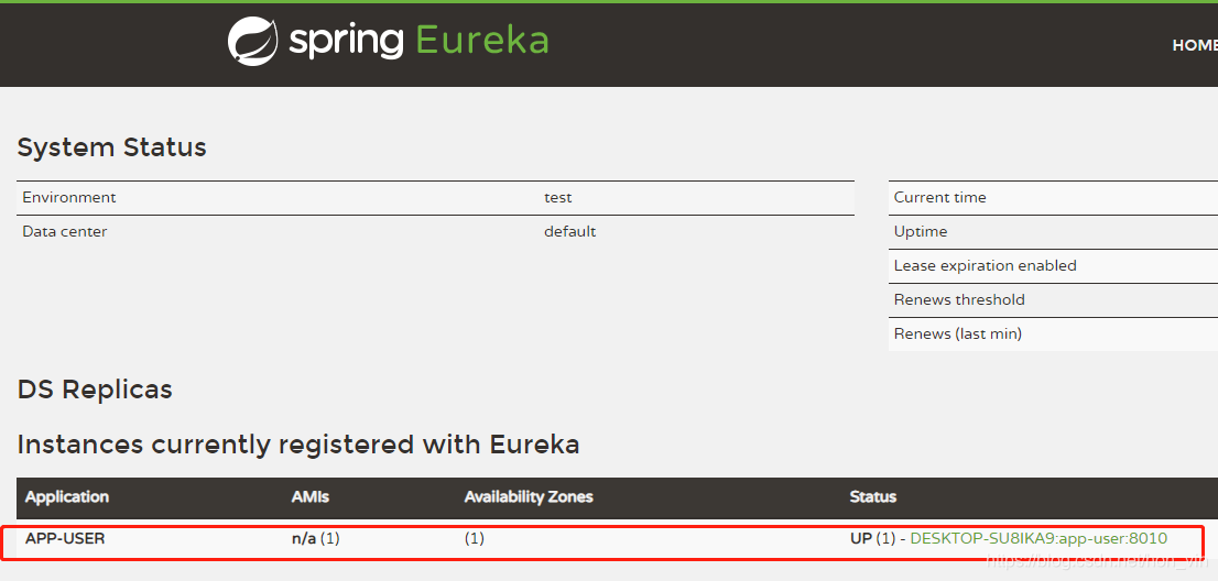 再次打开注册中心页面http://localhost:8100,就可以看到app-user服务已经被注册进来了