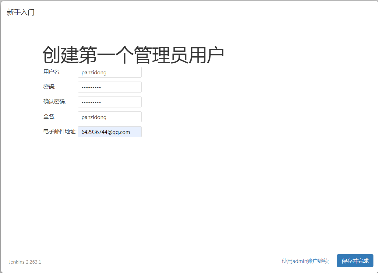 创建第一个管理员帐号: