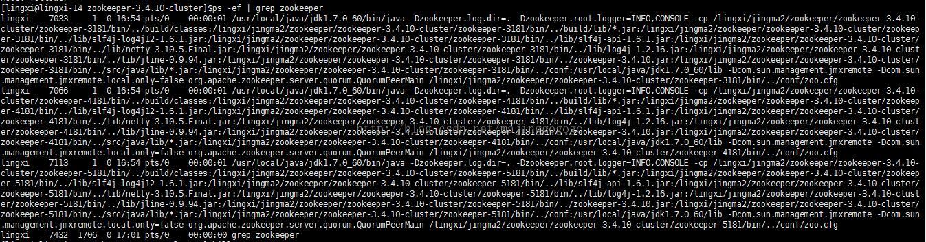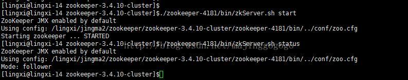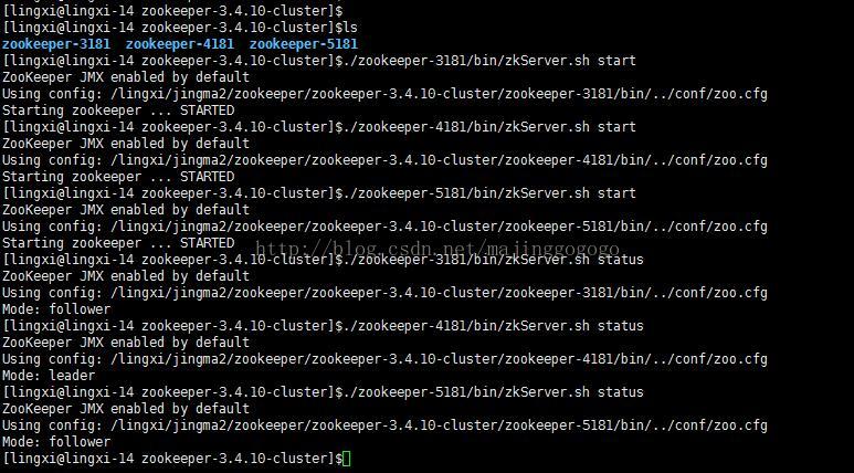 确保完成了上面的3项修改后,接下来就可以启动各个zookeeper服务了。如下所示: