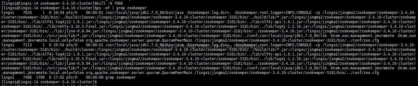 下面我们看看zookeeper集群能否正常在某个zookeeper服务挂掉之后整个集群能否正常提供服务。