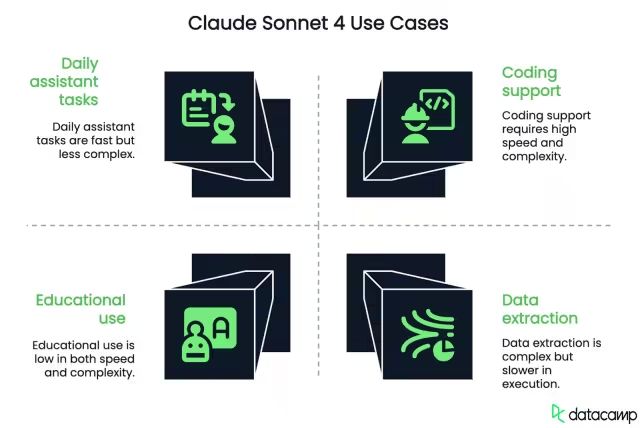 Claude Sonnet 4是Claude 4系列中的较小模型。它旨在用于通用目的,在大多数常见的人工智能任务中表现良好,包括编程、写作、回答问题和数据分析。它还对免费用户开放,这使得这一质量模型显得特别易于获取。