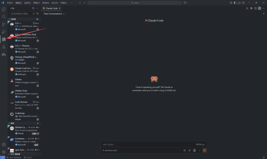 打开VS Code,点击扩展,搜索Claude Code,下载扩展: