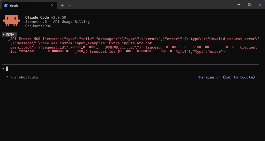 解决Claude Code的Error 400 : Extra inputs are not permitted