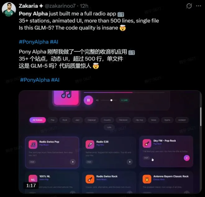更有人仅用一句提示词,就让它生成了一个包含35个全球电台的收音机网页应用,500多行代码流畅无误,UI动画丝滑。