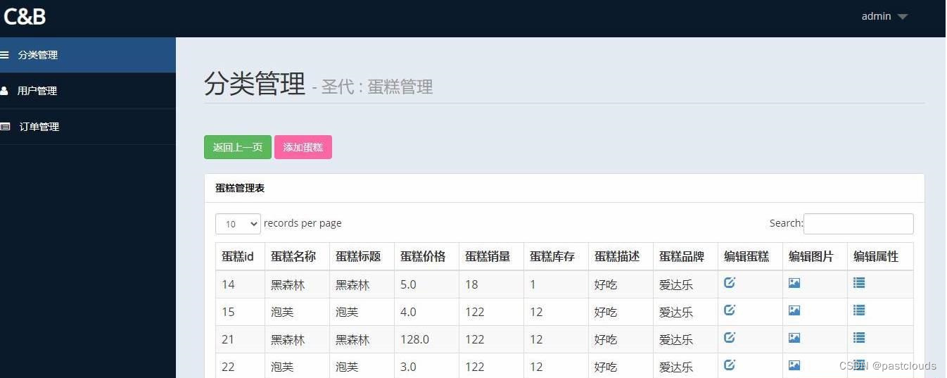 管理员登录,蛋糕分类管理,蛋糕管理,用户管理,订单管理等功能。