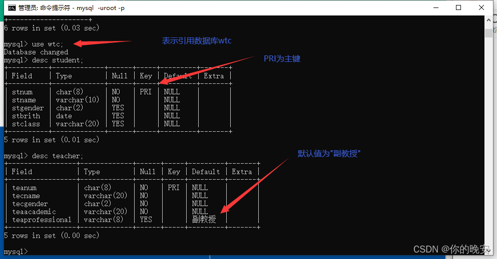 | 5 | teaprofessional | varchar(8) | YES | default"副教授" | 职称 |