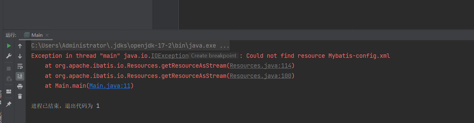 写入到目录里面Mybatis-config.xml报错Could not find resource Mybatis-config.xml。