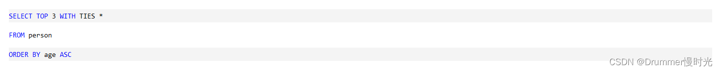 两个代码块都实现了相同的结果 - 从名为person的表中返回3个年龄最小的条目。但语法有了巨大的变化。当然,语法是主观的,所以我们不能给出任何建议; 选择对你来说更直观的东西。可以在此处找到MySQL和SQL Server之间的实现更改的完整列表。