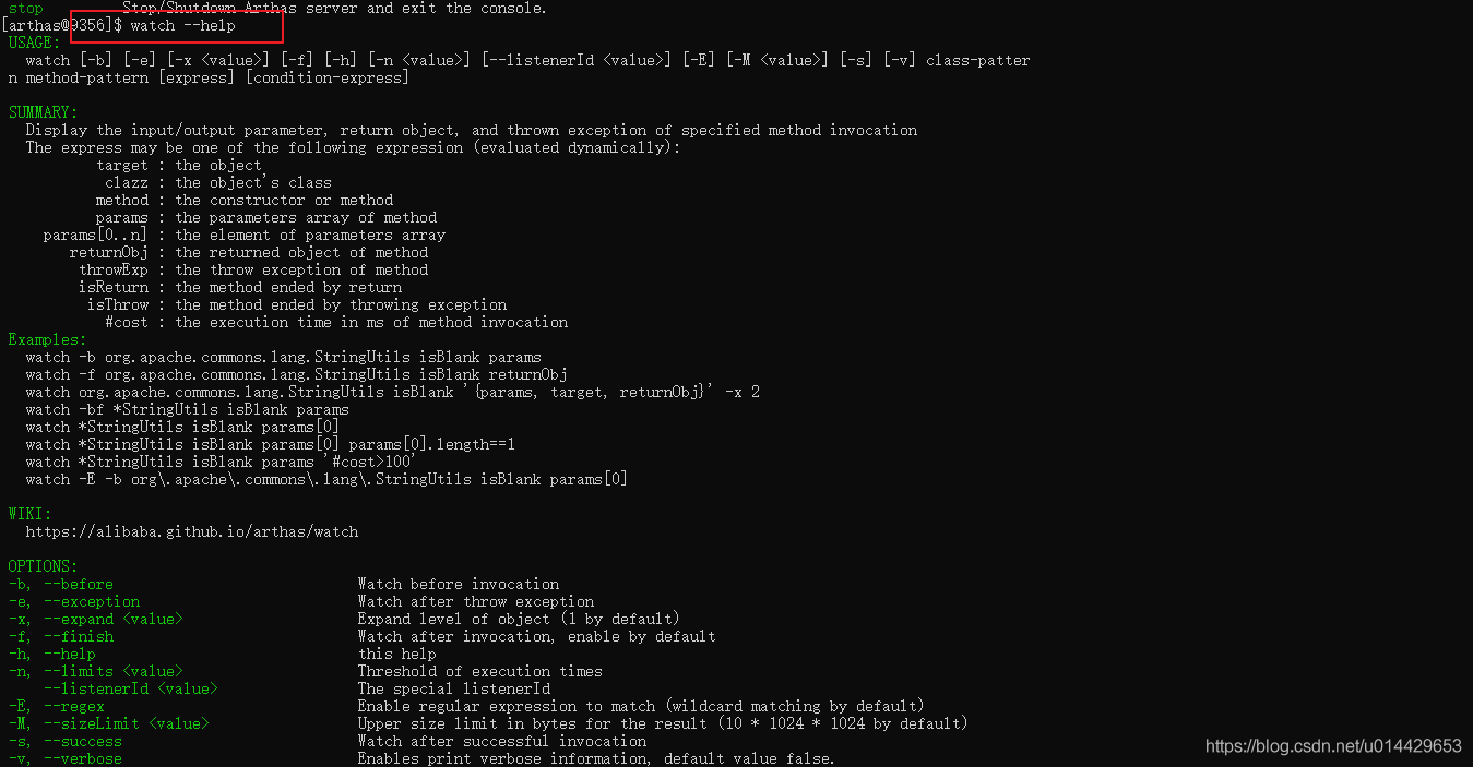 不仅会显示出命令是干嘛用的,命令的完整参数,还很贴心地提供了一些具体的例子,参考开源地址:https://github.com/alibaba/arthas。