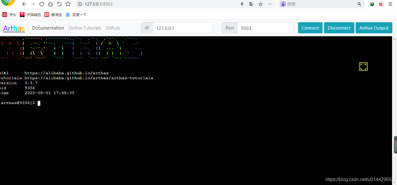 Arthas 目前支持 Web Console,在成功启动连接进程之后就已经自动启动,可以直接访问 http://127.0.0.1:8563/ 访问,页面上的操作模式和控制台完全一样。