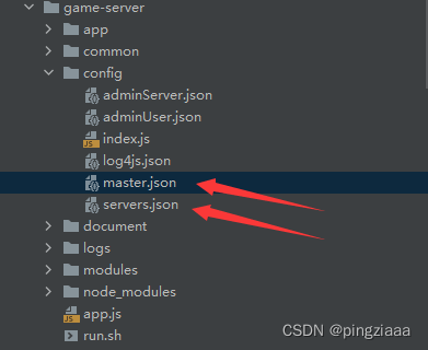 配置master.json servers.json这是配置是pomelo框架的配置文件,可以很方便的配置多个服务器节点,方便扩展服务器。我们测试只需要配置一台即可
