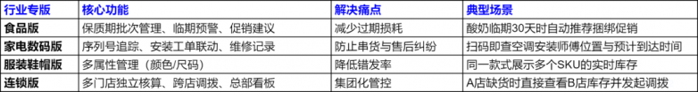 七色米突破传统软件“一刀切”模式,针对不同行业痛点提供专版功能: