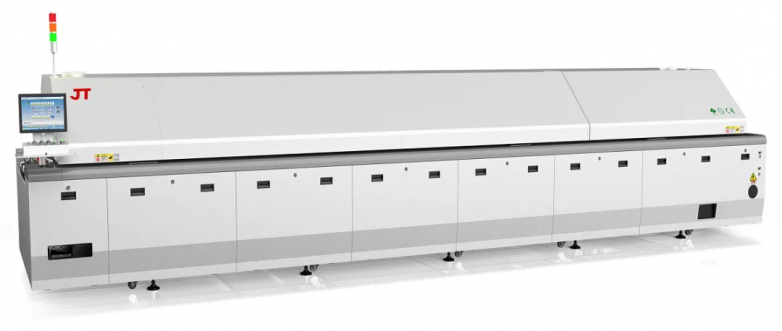 劲拓则将AI技术融入回流焊智能化升级,其新型智能直流回流焊搭载基于深度学习的神经网络模型,通过PCBA板材质、尺寸等基础数据与热力流体仿真数据的双重训练,可自动预测最优工作参数,并且能随实际生产数据的积累持续迭代优化,无需人工反复调试,为回流焊设备的智能化转型提供清晰路径。通过实时监测核心部件的运行状态与参数,并结合历史数据分析,系统能够提前识别异常征兆,提示客户及时进行维修或更换,从而有效减少突发停机风险,同时降低设备运维的难度与成本。客户可根据换班、停线维护等不同场景设定时间,设备自动进入深度或浅度休眠模式,显著降低电力与氮气的消耗,实现节能环保与运营成本节约的双重目标。休眠时间到达后设备进入生产状态,另外设备可接收前道工序设备信号提前唤醒。