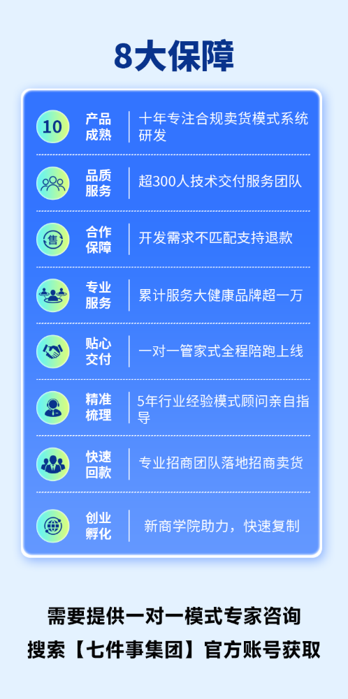 需要提供一对一专家咨询诊断您目前的商业模式服务请搜索【七件事集团】官方账号就能找到他们!