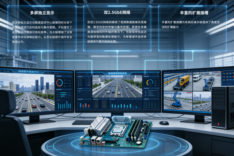 在某智慧城市项目中,IMBA-ARL-Q870被应用于视频监控系统。其多屏独立显示功能使得监控中心能够同时监控多个关键区域,而双2.5GbE网络则确保了视频数据的实时传输和存储。此外,丰富的扩展插槽还为未来升级提供了可能,满足了智慧城市对安全监控的持续需求。