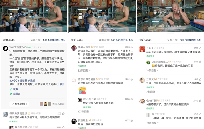 在寄托思念的清明时节,强烈的真人感和温柔细腻的叙事风格,让该AI短片瞬间戳中无数网友的泪点。两位主创表示,用可灵3.0 Omni做这部短片,并非简单的技术秀肌肉,他们坚信“任何形式都是为了服务于故事”,这句话也贯穿了《纸手机》的全部创作。