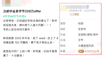 估计不少打工人刷到这则消息都要破防了!😭评论区里全是羡慕的声音,不少人直言“这薪资直接拉开了行业差距”。互联网行业的薪资本就让很多普通打工人望尘莫及,没想到人工智能大模型赛道的薪资直接“卷上了天”!在当前就业环境下,想冲击年薪百万,AI大模型方向无疑是优质选择,甚至比传统互联网岗位更具竞争力。这几年,随着人工智能技术深度渗透到金融、医疗、教育、自动驾驶等各个行业,大模型相关岗位已然成为科技领域的