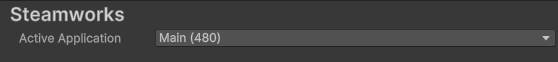 这里显示当前活动的 Steam 应用程序。默认情况下,系统至少会有“Main”(主应用)和“Demo”(演示应用)。这会为选中的应用 ID 在 Player 设置中设置一个“脚本定义符号”(Scripting Define Symbol)。