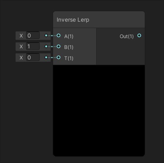 输入端口 T 代表需要计算其相对位置的目标值。这个值应该位于 A 和 B 定义的范围内,但也可以超出这个范围,此时 Inverse Lerp 的结果会小于 0 或大于 1。