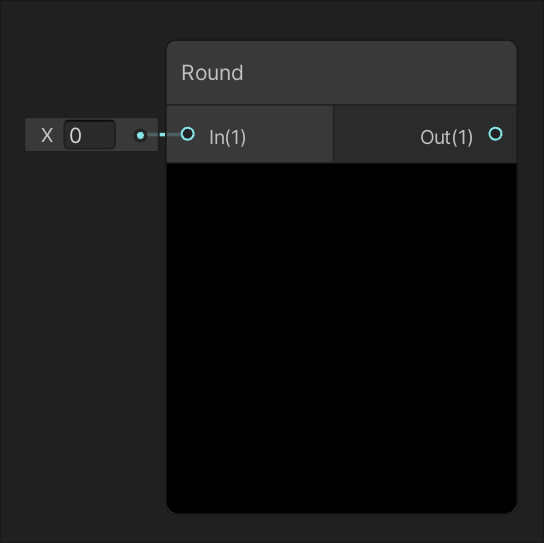 In端口是Round节点的唯一输入接口,接受动态矢量类型的数据。这意味着您可以连接任何标量或矢量值到此端口,包括常数、属性、纹理采样结果或其他数学节点的输出。