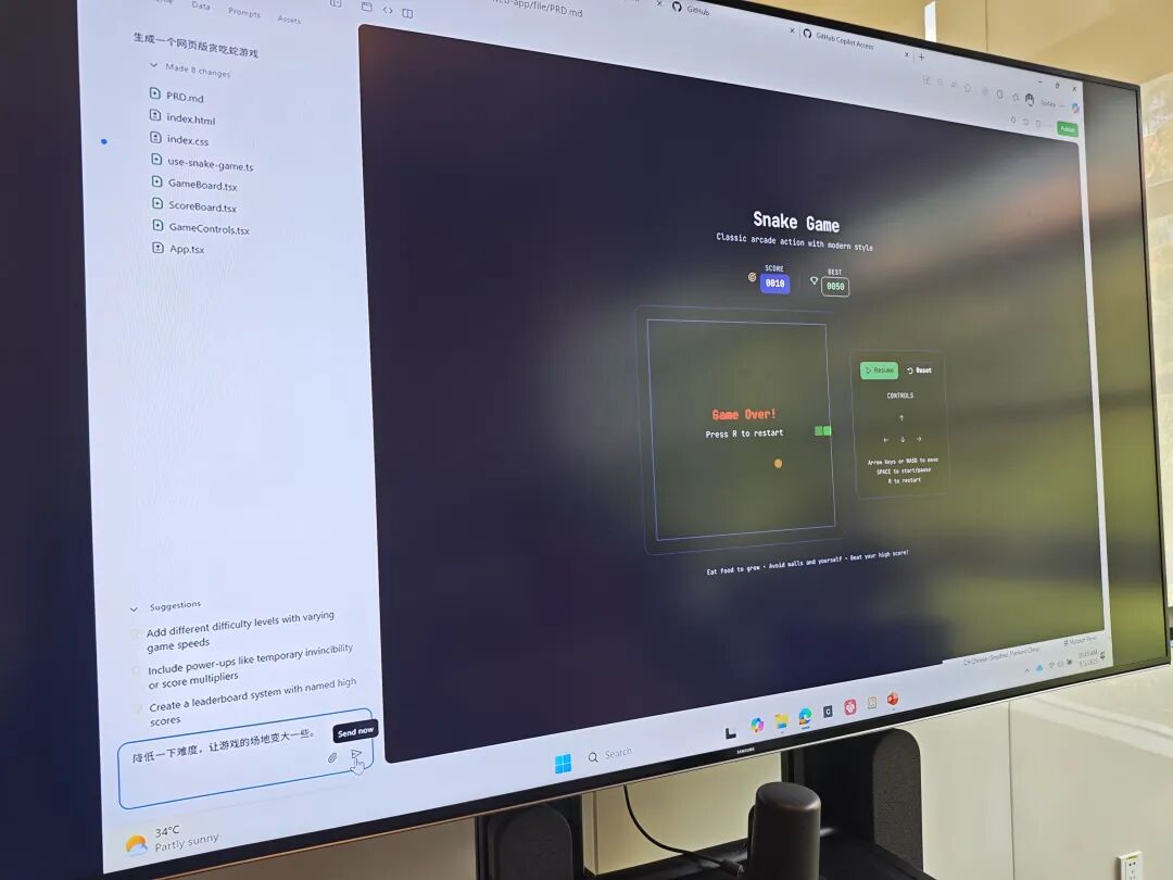 几分钟的时间,Spark 就生成好了一个相当不错的贪吃蛇游戏。保罗自己也被震撼到了,表示自己手搓的话,可能要花一天的时间。