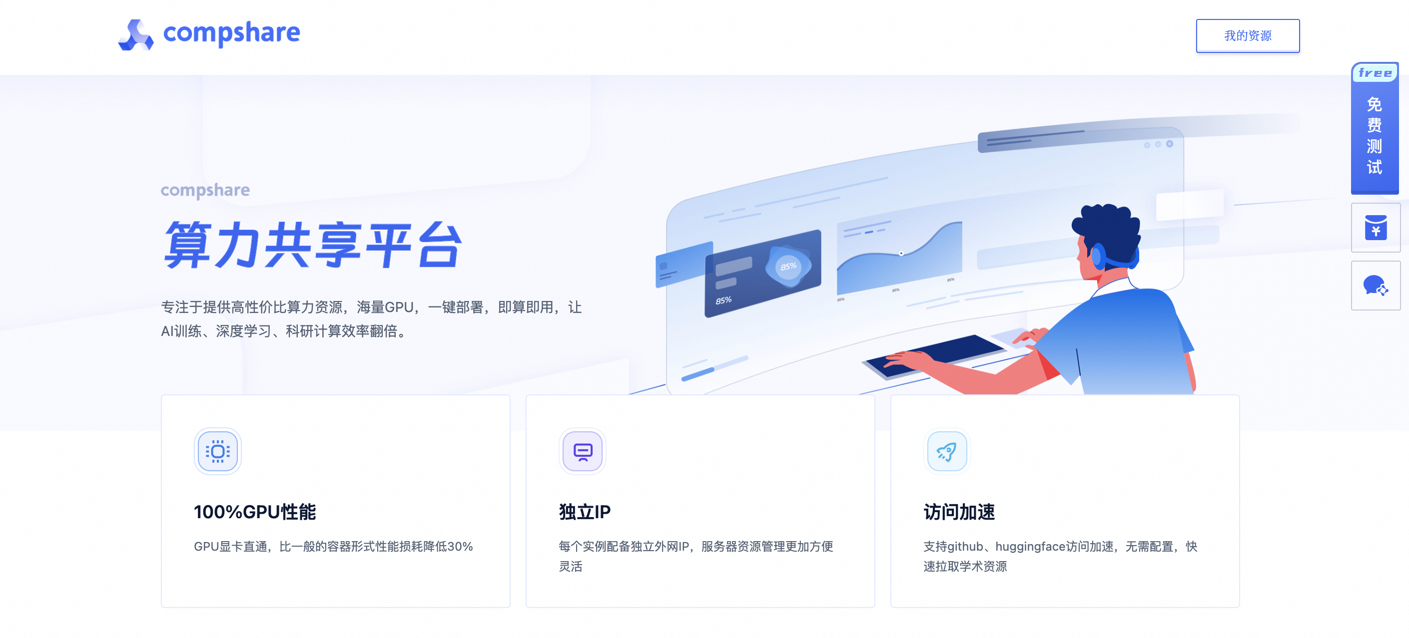 给大家推荐一个性价比超高的GPU算力平台:UCloud云计算旗下的Compshare算力共享平台。