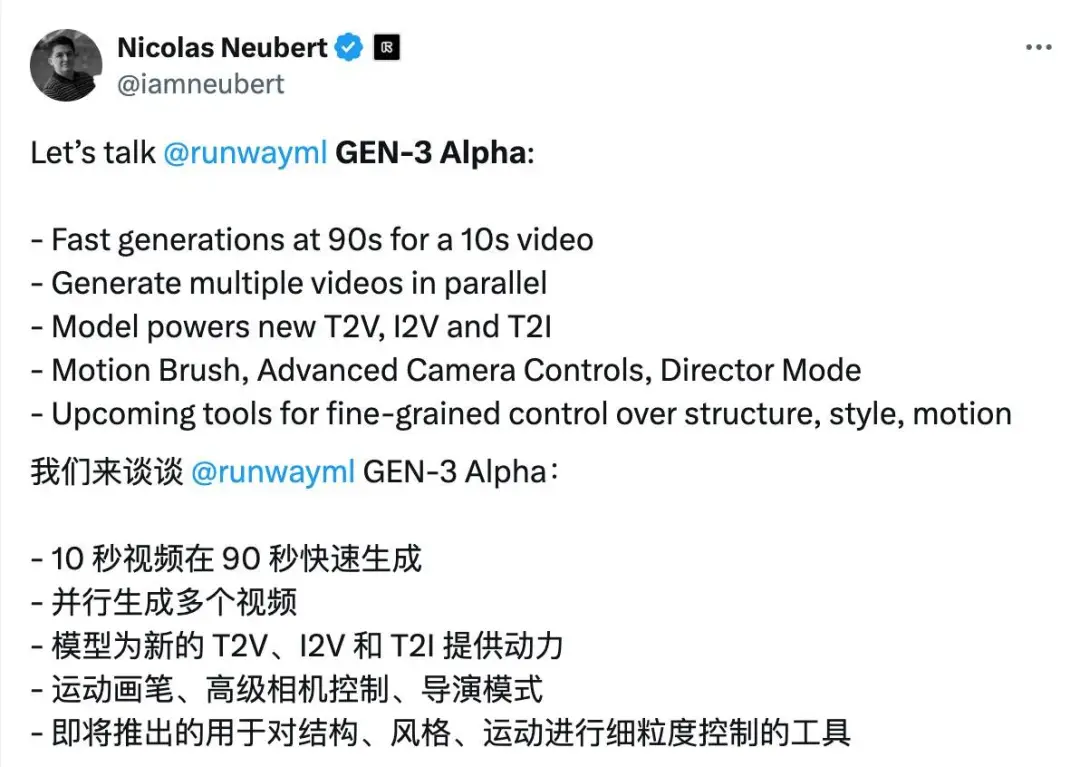 本周二(6月18号),老牌AI视频生成巨头Runway发布最新文生视频模型Gen-3 Alpha,网页纷纷称赞比Sora还好,Gen-3 Alpha特点如下:
