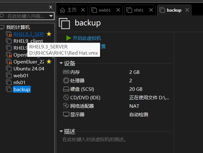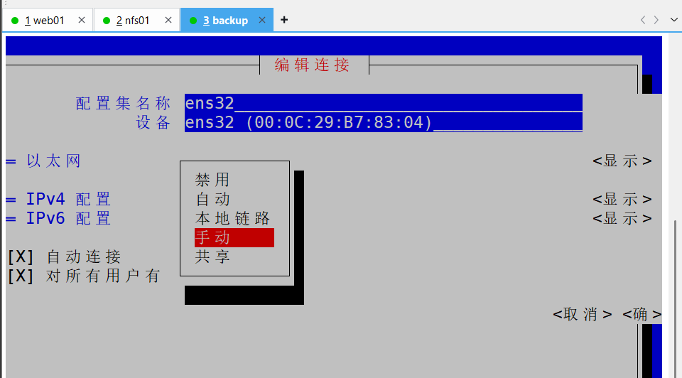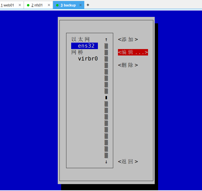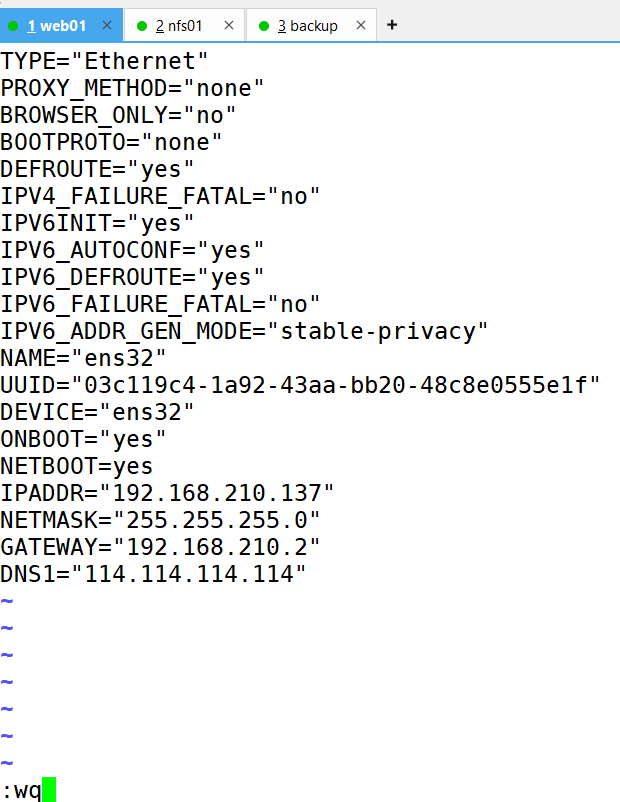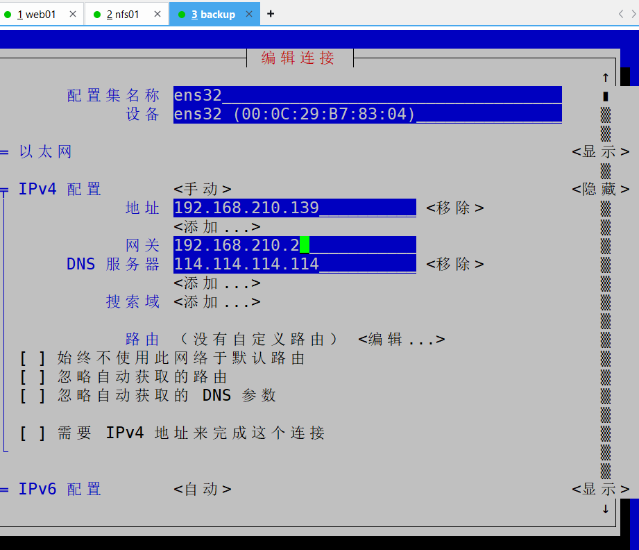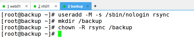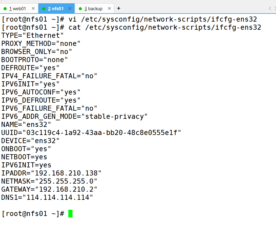 1、首先准备工作就创建三台虚拟机(web01、nfs01、backup)