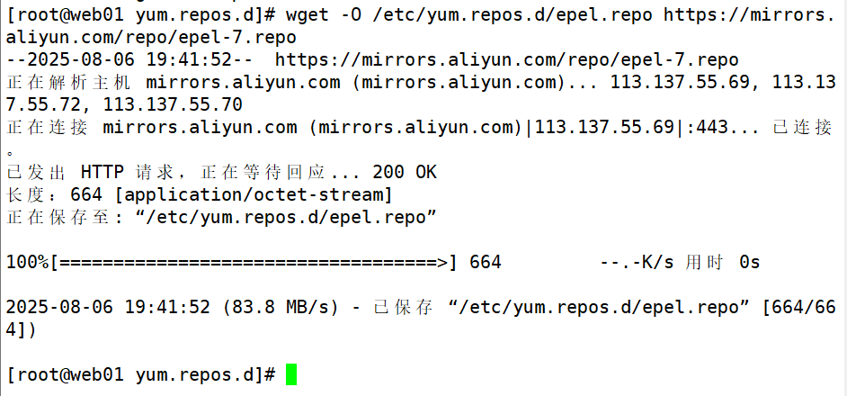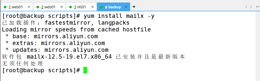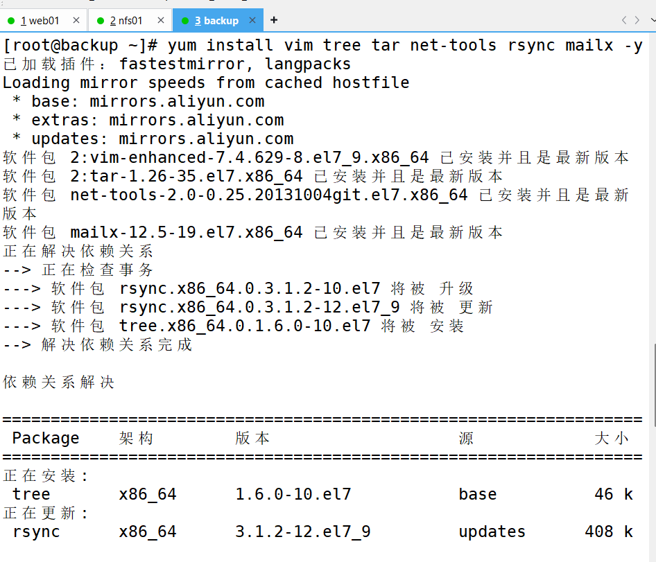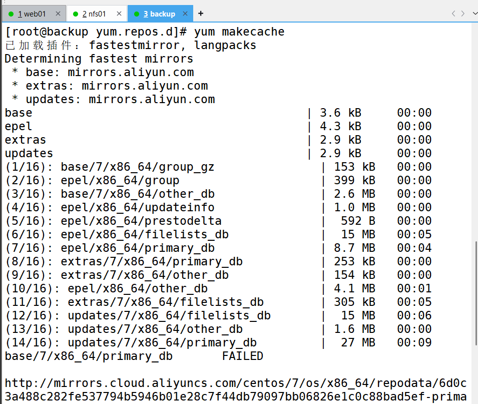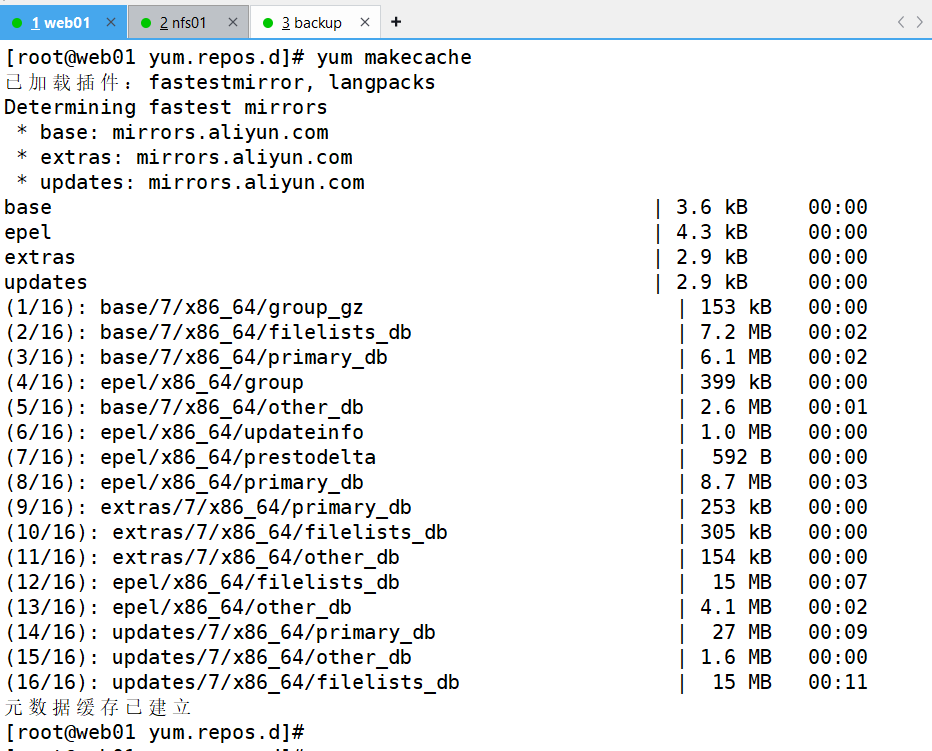 3、更换为阿里镜像、下载需要用的环境(跳到nfs01机子进行服务器搭建然后将网页挂在web01上)[根据以下步骤]