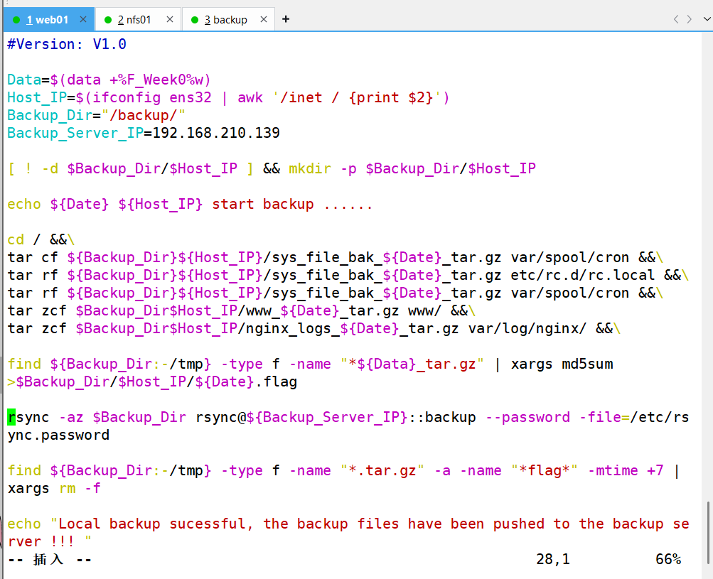 5、编写备份到buckup机子的备份脚本,开启rsync,进行文件传递备份。运行脚本