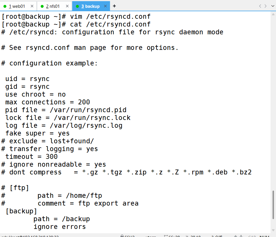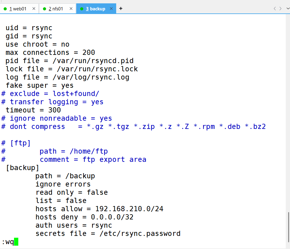 3、修改rsync配置文件,并根据配置文件进行设置