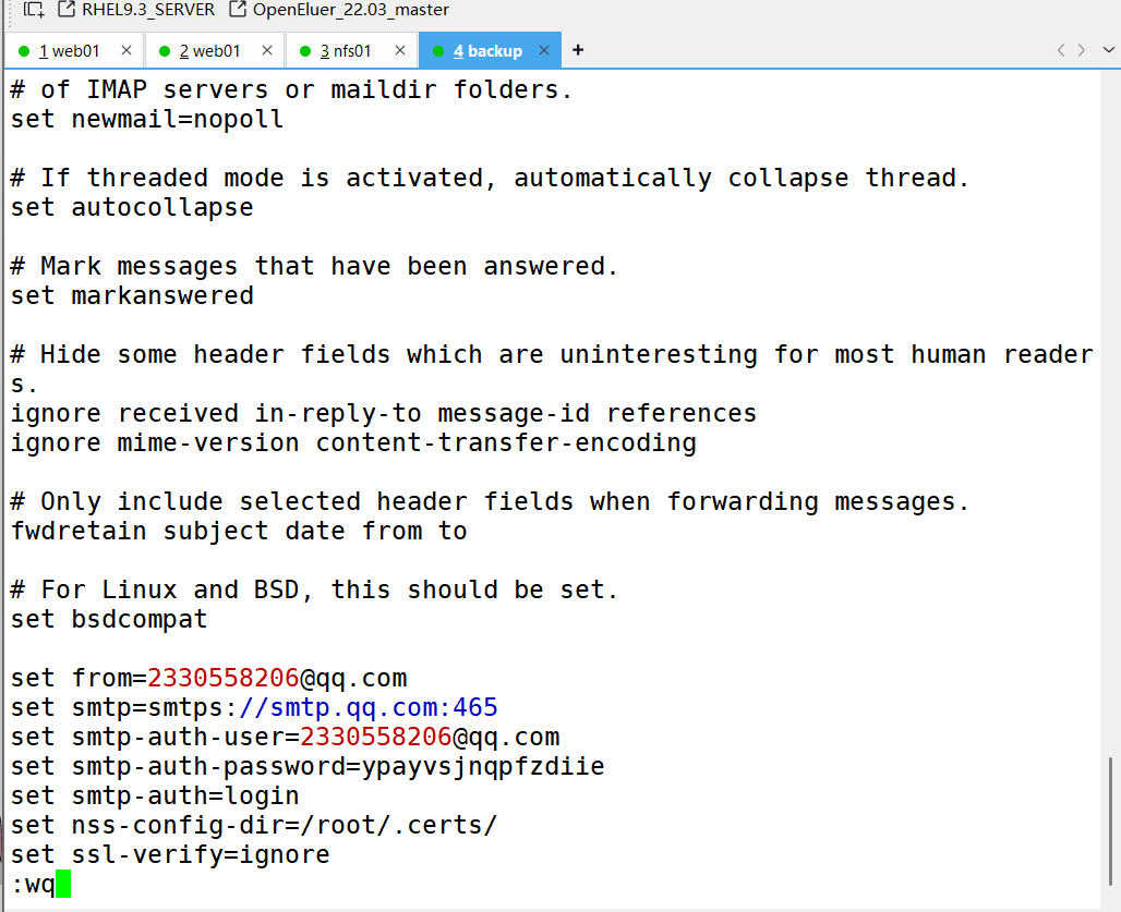7、安装邮件服务、配置qq邮箱、ssl证书配置邮件服务(用自己的QQ号,还有自己的效验码)跟着我的步骤