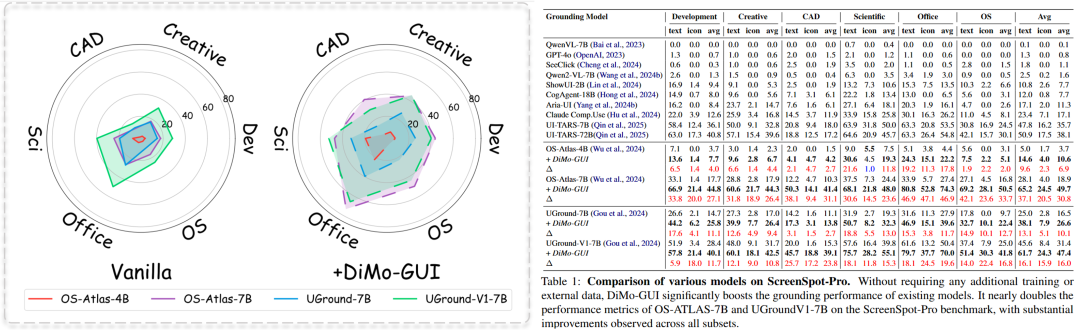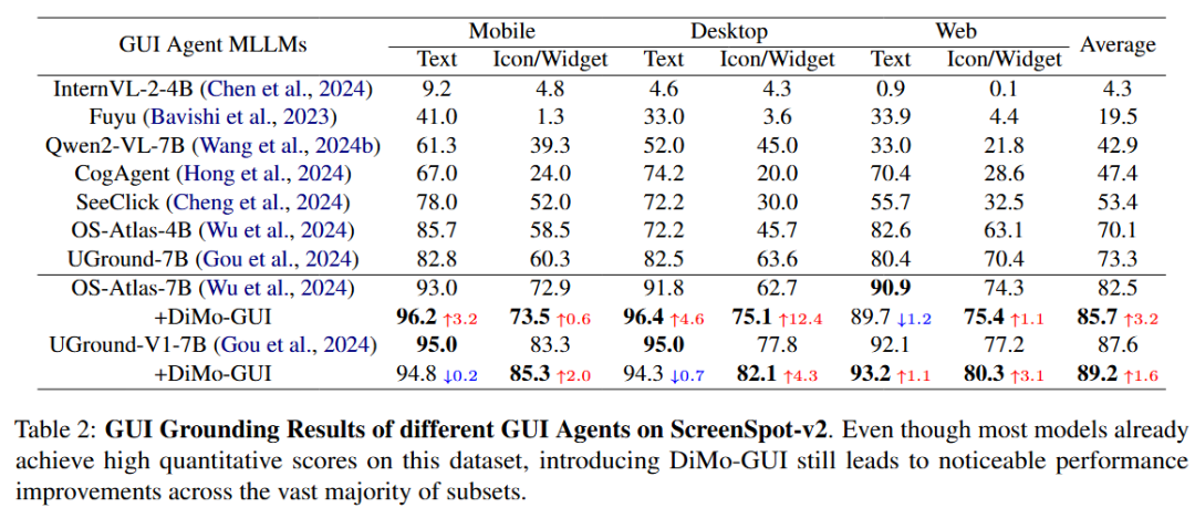DiMo-GUI 可以作为即插即用的框架大幅提升多个 GUI 模型的性能。