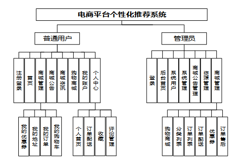 电商平台个性化推荐系统划分为了前端模块和后端模块两大部分。