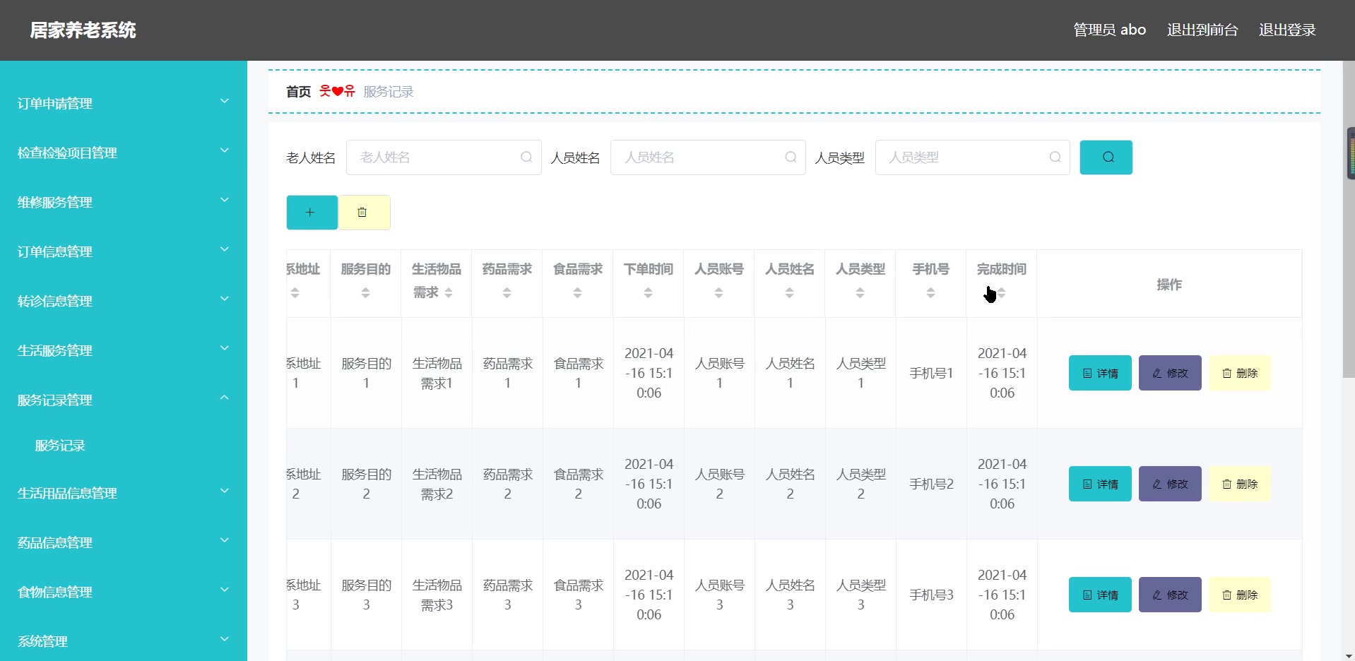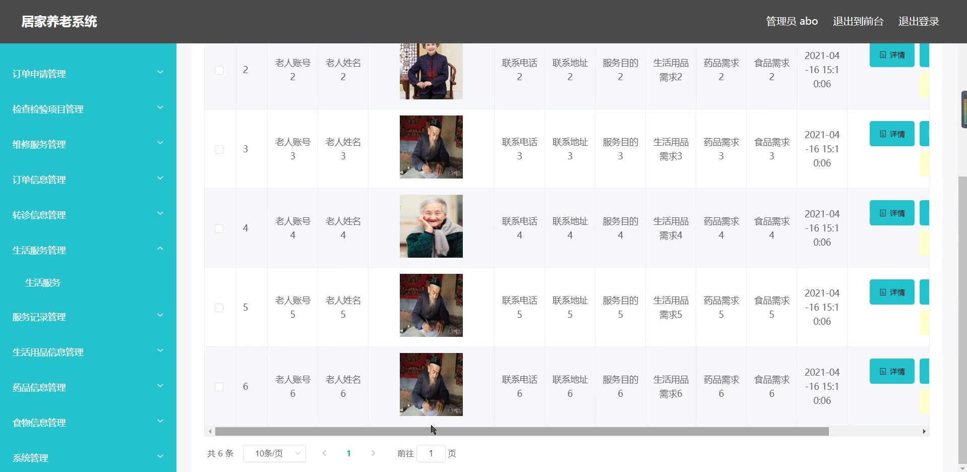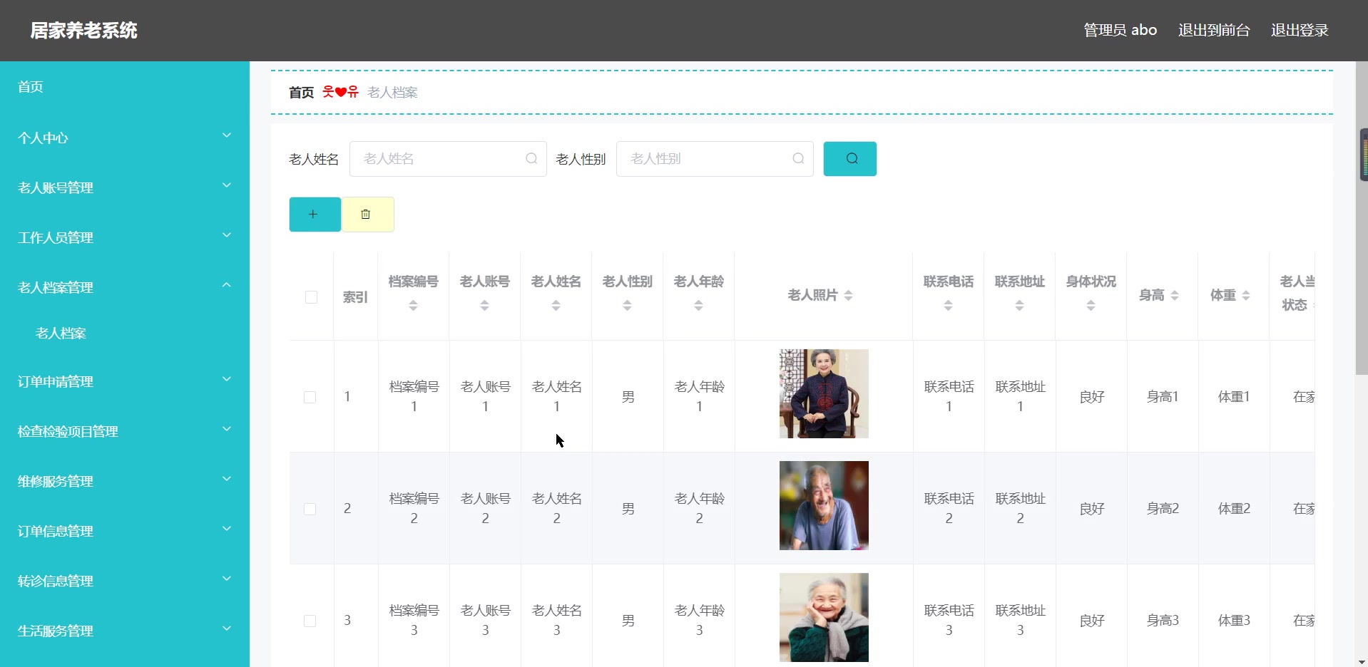 - 老人档案管理