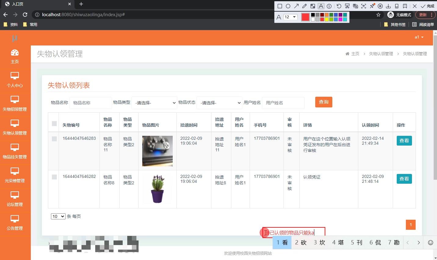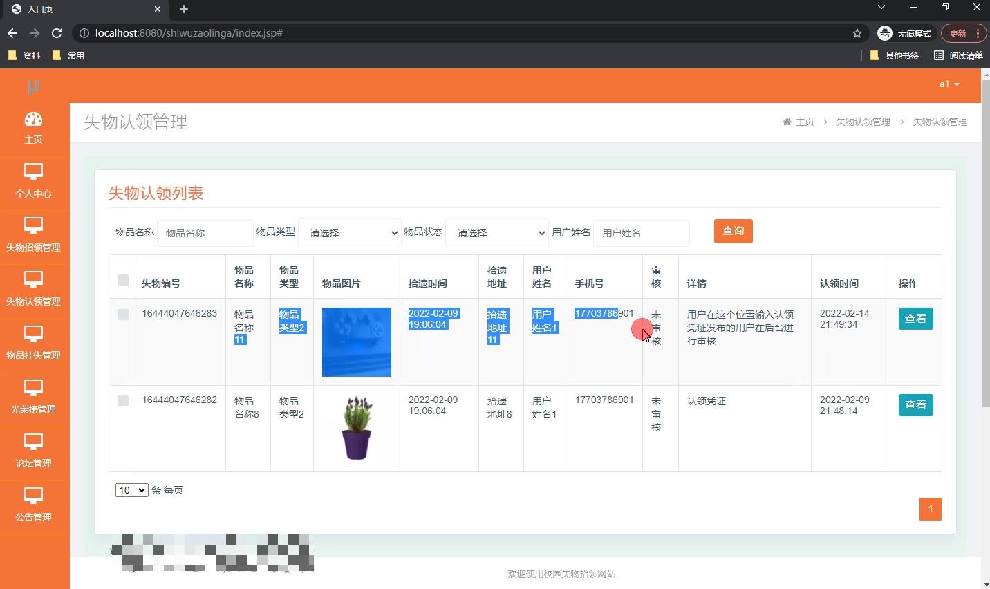 基于Java+SSM+Django校园失物招领网站(源码+LW+调试文档+讲解等)/校园失物招领网站/失物招领系统/学校失物招领/寻物启事网站/丢失物品寻找/失物招领公告/校园物品丢失/失物信息查询