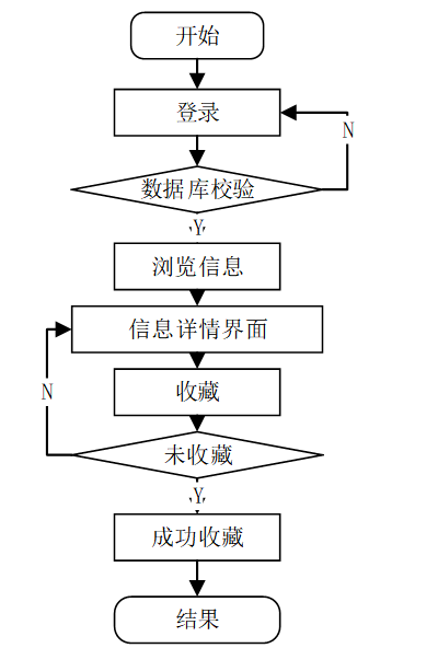 在校园外卖点餐系统中,用户登录后,浏览美食信息详情界面能进行信息收藏,用户收藏信息的流程图如图3-6所示: