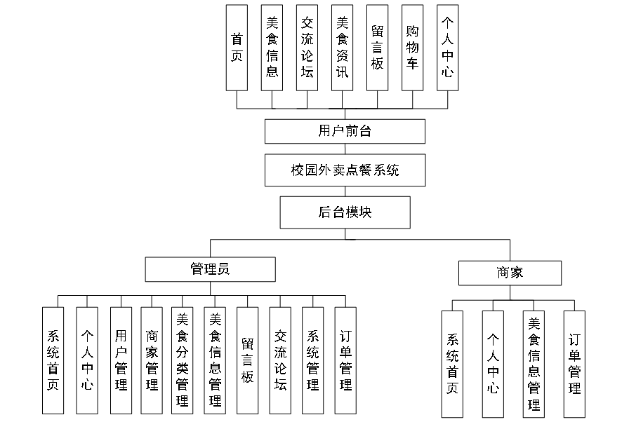 本系统采用B/S架构,结合Java语言、Spring Boot框架以及Vue.js前端框架进行开发,旨在为校园用户提供一个功能全面、操作简便的外卖点餐平台。系统的主要功能模块包括: