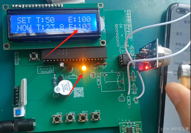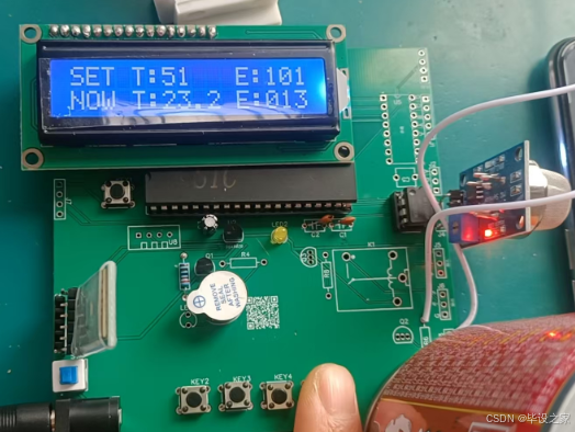 随后,我通过加热源测试了DS18B20温度传感器,当温度超过预设值时,系统同样触发了报警,验证了温度报警功能的可靠性。如下图5.4所示。