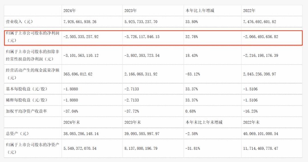 以维信诺为例,其主营业务是AMOLED新型显示产品的研发、生产、销售和技术服务,目前的市占率已经是全国第二,仅次于京东方。但在AMOLED赛道上,公司已经连续四年巨额亏损。2021年至2024年间,公司归母净利润分别为-15.19亿元、-20.66亿元、-37.26亿元和-25.05亿元,四年来累计亏损近百亿元。