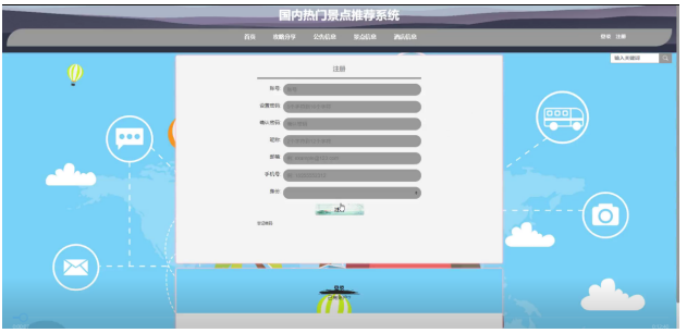 系统的前端界面主要实现页面的美观和动态效果使之符合广大群众的审美观,后台主要使用的技术主要有Java编程语言,SSM框架,MySQL数据库的旅游推荐系统解决了传统旅游推荐方式中数据分析所带来的人力、物力和时间上的虚耗和交流深度的限定,这让交流的过程更快捷、准确、便利,同时完成国内热门景点推荐系统的基本功能:用户管理、景点信息、景点类型、酒店信息、订票信息、订房信息、退房信息、评价留言、资讯分类等。