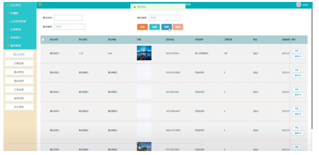 景点信息管理:对景点信息进行维护,添加、删除、修改信息。